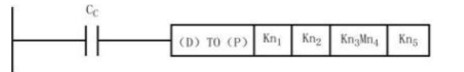 Kn3Mn4:源數(shù)據(jù)在PLC中的存儲地址。Kn3代表需要寫入的二進(jìn)制位數(shù),以4位(bit)為單位,如K4代表16位,允許輸入的值為K1~K8。Mn4代表源數(shù)據(jù)在三菱PLC中的存儲地址。源數(shù)據(jù)也可以是16位數(shù)據(jù)寄存器D(常用),此時就不需要前綴Kn3了。
