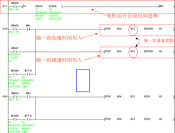 10.伺服電機加速時間和減速時間的程序設定方法: